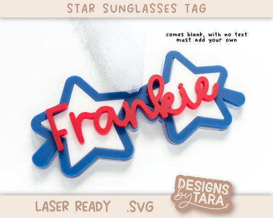 4th of July Star Sunglasses Name Tag SVG | Patriotic Keychain Laser Name Ornament for Glowforge xTool | Bag Tag Digital File