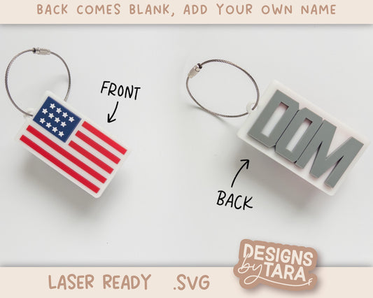 American Flag Name Tag keychain SVG | Patriotic Bag Charm Luggage Tag Sign for Lasers | Boy Nursery Decor | Glowforge xTool Digital File